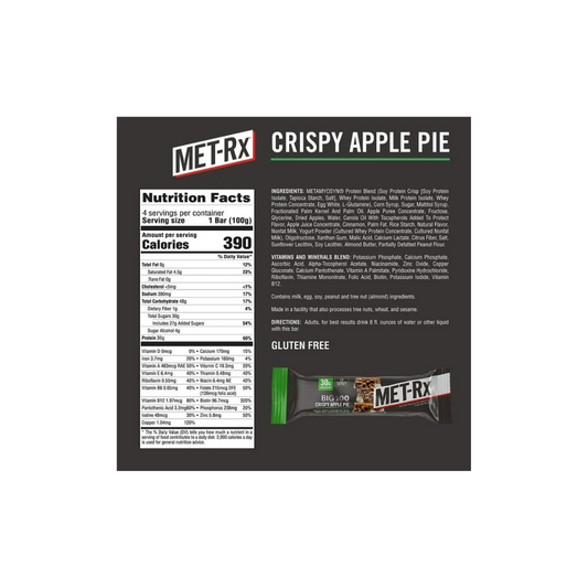 MET-Rx Big 100 Colossal Protein Bars, Crispy Apple Pie Meal Replacement Bars, 4 Ct