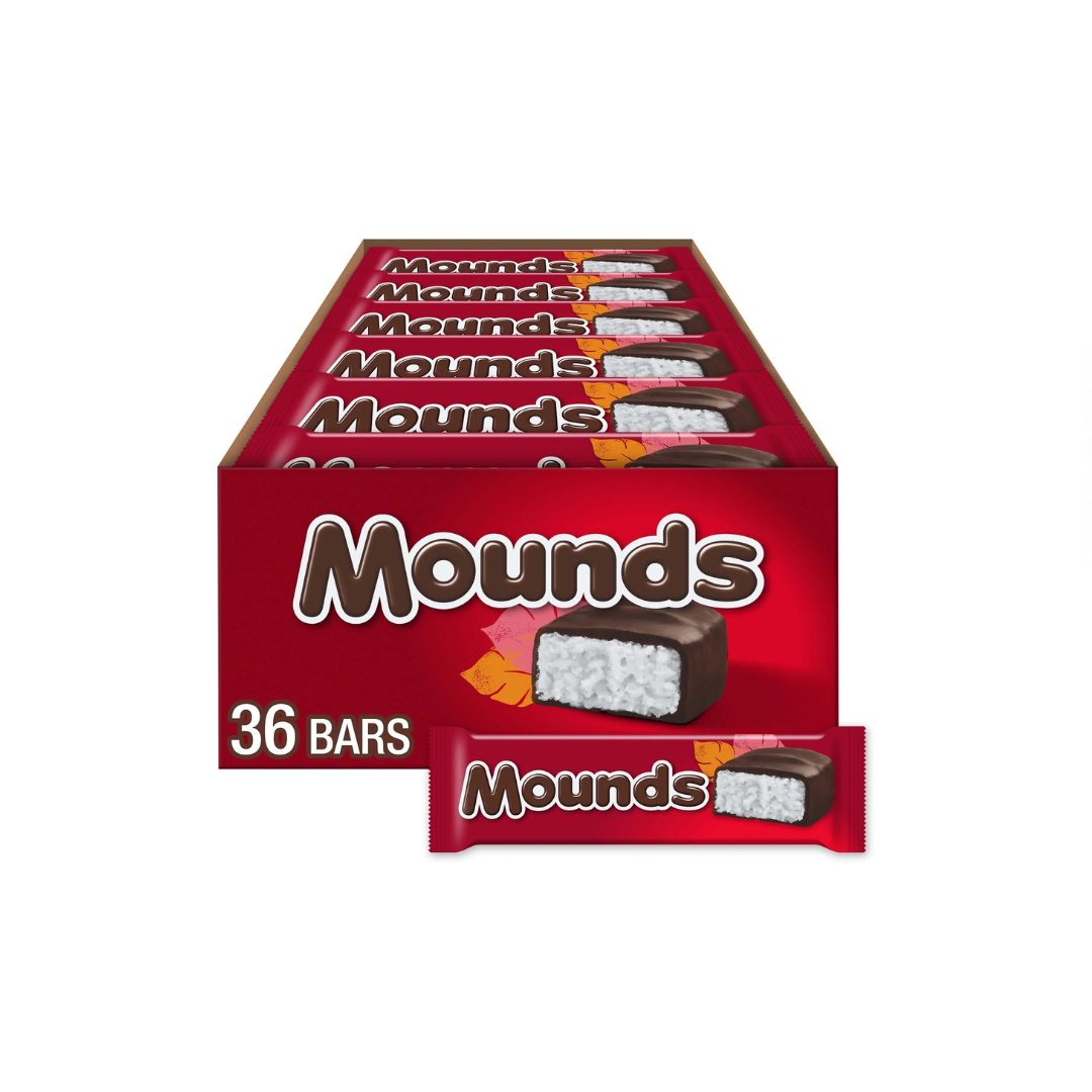 Contains thirty six (36) 1.75-ounce MOUNDS Dark Chocolate and Coconut Candy Bars in a bulk box